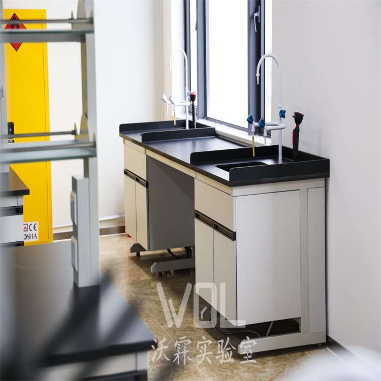 核心配置:每工位配實(shí)芯理化板實(shí)驗(yàn)臺(帶導(dǎo)流槽)、萬向抽氣罩(風(fēng)速 0.3-0.5m/s)、純水接口與雙電壓電源;集中放置 5-10L 高剪切乳化機(jī)、小型攪拌釜、超聲波分散儀等小試設(shè)備。